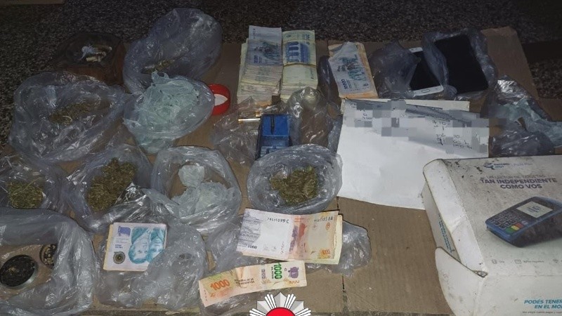 En los procedimientos se incautaron 141 gramos de marihuana, 10 gramos de cocaína, 7.124.200 pesos, nueve celulares, dos balanzas de precisión, recortes de nylon, anotaciones, un cartucho calibre .22, un picador de marihuana y un postnet de Mercado Pago.
