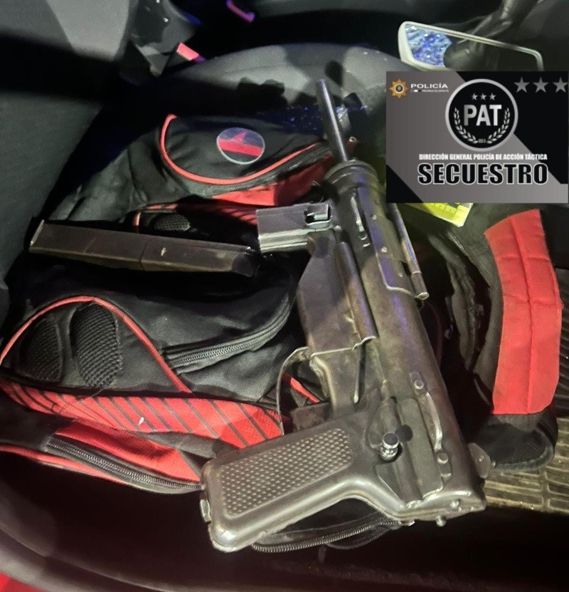 En una mochila que llevaban con ellos fue hallada una pistola ametralladora.