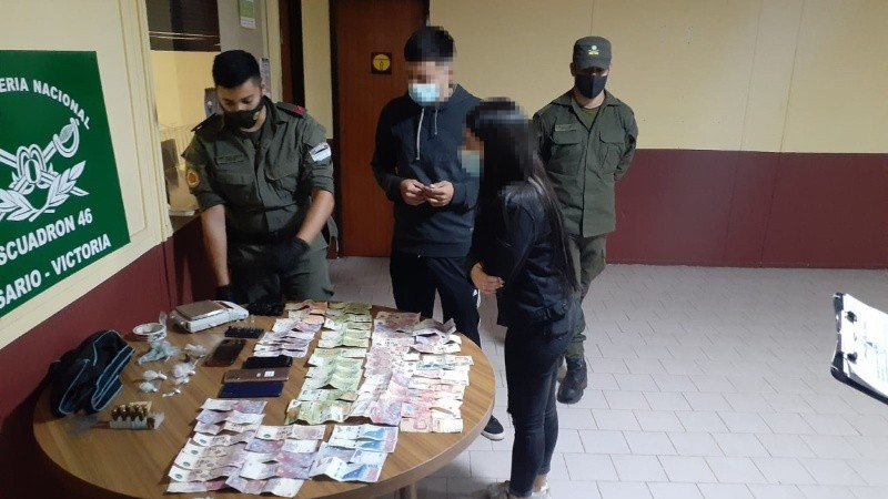 La mujer y el hombre aprehendidos tenían 37 gramos de marihuana, cuatro gramos de cocaína, diez municiones de arma de fuego y 14.200 pesos en efectivo.