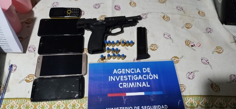 Como resultado de los allanamientos los agentes de la AIC incautaron un arma de fuego Bersa 9 mm, una motocicleta CB Twister 125 cc con pedido de secuestro, dinero, documentación y varios celulares y notebooks.