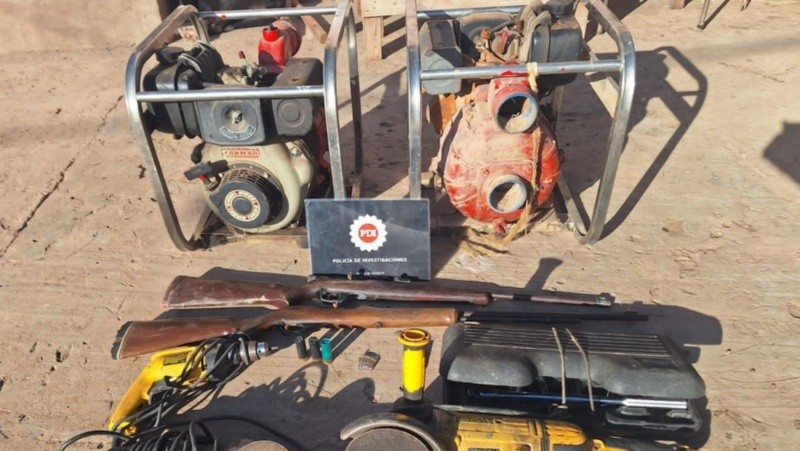 El viernes la PDI y personal de la Unidad Regional allanaron nueve domicilios y se incautaron de cinco televisores –de 75, 65 y 50 pulgadas–; herramientas de mano y ocho armas (carabinas y escopetas), motoguadañas, bombas de agua, reflectores y hasta cuatro motores que contaban con pedido de secuestro, entre otros objetos de los cuales los sospechosos no pudieron acreditar propiedad.