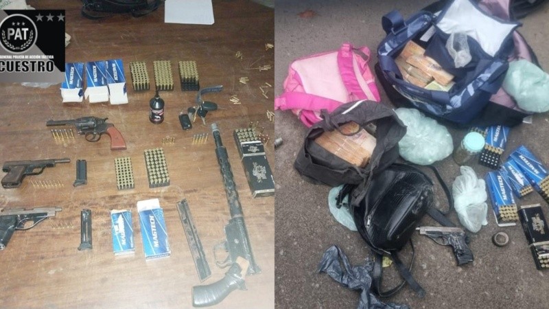 Según las fuentes, el conteo de dinero arrojó poco más de 2 millones de pesos. Las municiones totalizaron 384 unidades, de cuatro calibres distintos, agregaron. El peso de la cocaína, en tanto, se calculó en medio kilo, distribuido en dos trozos y gran cantidad de envoltorios.