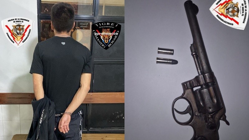 Brian C. se bajó de la moto y rápidamente fue detenido. Entre sus prendas los agentes incautaron un revólver calibre 32 largo con un cartucho intacto y otro percutido. Su cómplice logró darse a la fuga a pie.