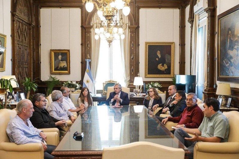 El anuncio fue formulado al Jefe de Estado y al jefe de Gabinete, Juan Manzur, en un encuentro en Casa de Gobierno que mantuvieron con los dirigentes cegetistas Héctor Daer, Carlos Acuña, Andrés Rodríguez y Gerardo Martínez, y con referentes de los movimientos sociales, entre otros funcionarios nacionales.