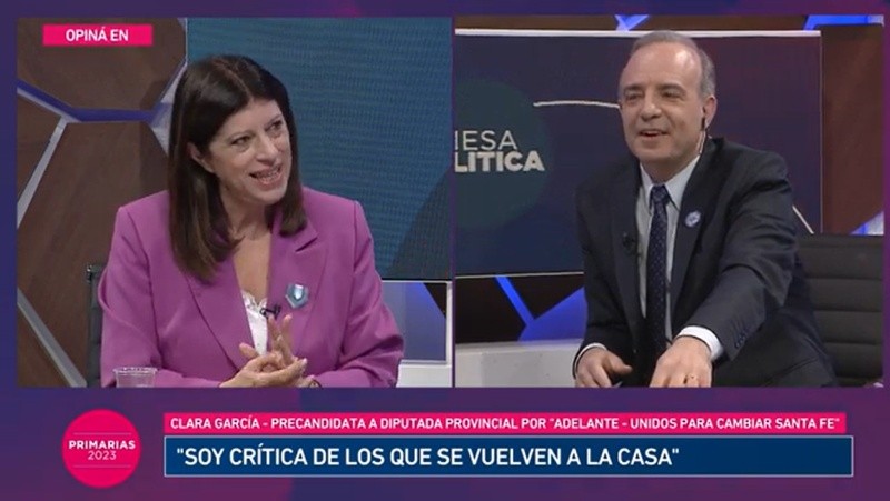 La diputada provincial socialista Clara García busca renovar su banca en estas elecciones Primarias Abiertas Simultáneas y Obligatorias (Paso) a través de la lista “Adelante” de Unidos para cambiar Santa Fe. En esta edición de Mesa Política (El Tres) y a una semana de la contienda política, la legisladora se mostró confiada en su desempeño, tiró todos sus dardos al gobierno provincial actual pero también se refirió a su propio espacio político del que admitió estar en tensión.