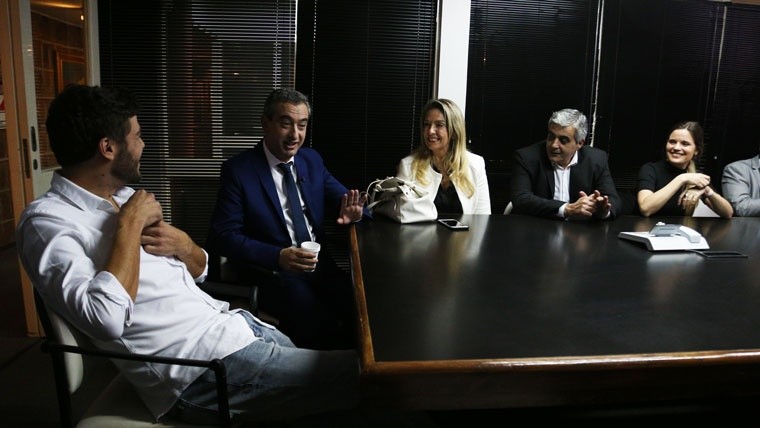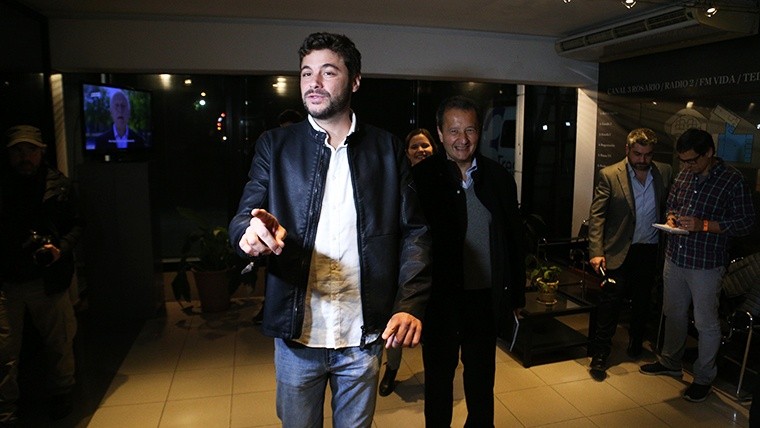 Un rato antes había ingresado su rival directo, si se atiende el resultado de las Paso, Pablo Javkin, candidato del Frente Progresista y portador de la única corbata del panel. Lo acompañaban su candidata a concejala María Eugenia Schmuck y demás colaboradores. En tanto, el primero que pisó El Tres, de camisa blanca y campera de cuero negra con una amplia sonrisa que pocas veces abandonaría, fue el candidato de Ciudad Futura Juan Monteverde. Junto a él, la candidata para el Concejo, Caren Tepp, y el postulante para la Legislatura provincial, Carlos del Frade. Siete minutos después, arribaba el candidato de Cambiemos Roy López Molina, de jean, saco azul y una impoluta camisa blanca.