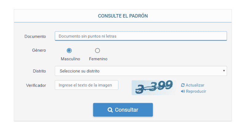 En el registro, el elector debe introducir su número de documento, género y distrito donde vota y se generará el establecimiento, la dirección, la mesa y el número de orden.
