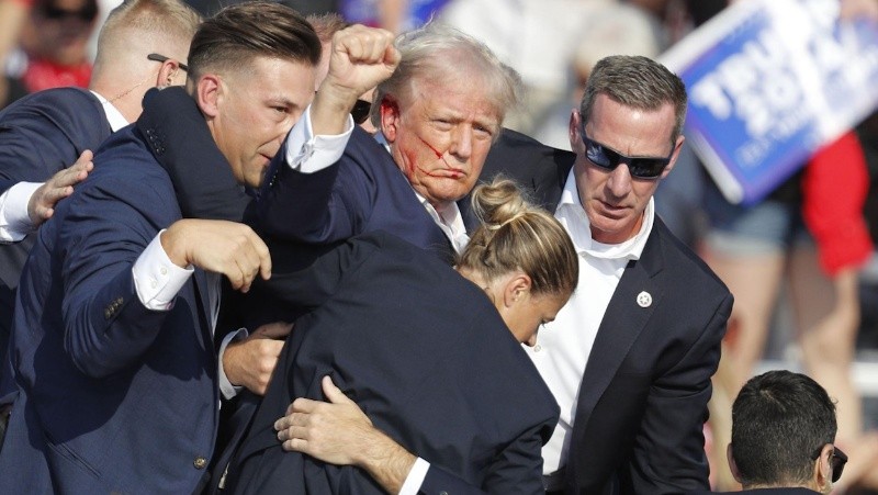 Era el último mitin al aire libre antes de que comience la Convención Nacional Republicana en Milwaukee que terminó este jueves. Trump fue sacado del escenario por el servicio secreto tras caer al piso con el rostro sangrante. Se fue por sus propios medios y pudo continuar normalmente con su agenda. El hecho refleja la imágen de un héroe resiliente, triunfante, imbatible que salió ileso ante lo imposible. En las primeras declaraciones a la prensa el republicano expresó “Solo Dios impidió lo impensable".