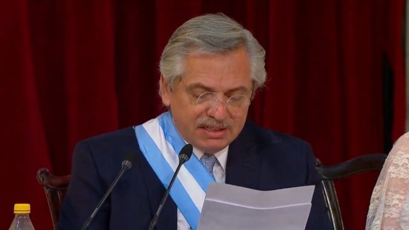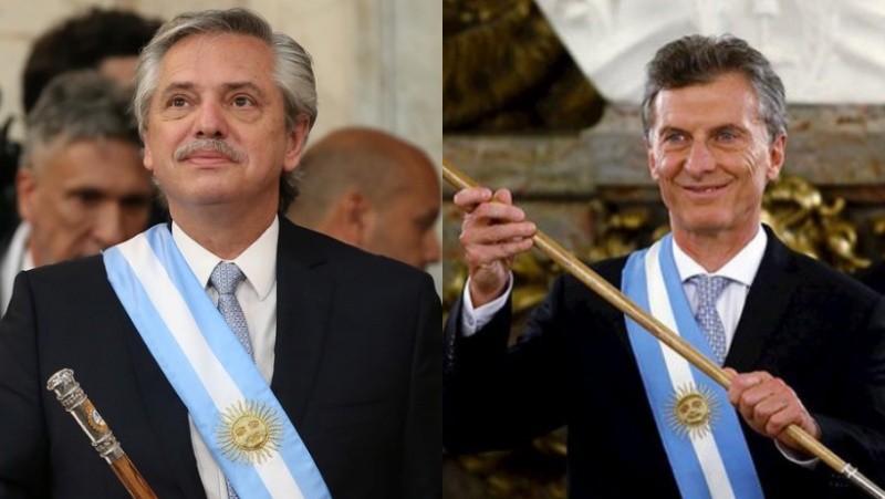 Mauricio Macri le colocó la banda presidencial a Alberto y, al parecer, quedó un poco desacomodada y apretada. Por otra parte, el flamante presidente utilizó una corbata muy similar a la que usó Macri al asumir en 2015