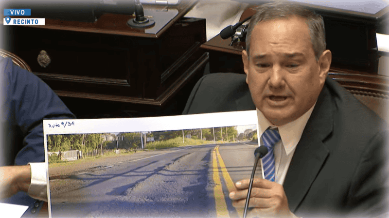 El senador peronista mostró fotos de rutas muy dañadas, algunas con cráteres, como la 51, la 68, la 50 o la 9/34, "que tiene peaje, se paga y la llamamos de la muerte, o sea que el mercado no lo soluciona". Mencionó siniestros viales con muertos en los últimos días en esas rutas.