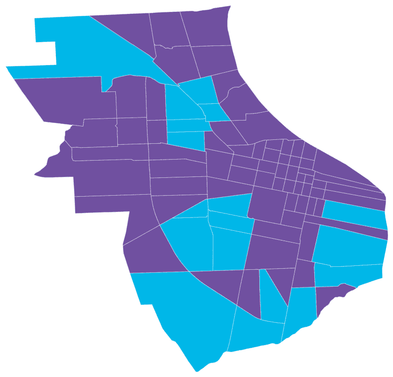 Rosario se pintó de violeta en el centro, macrocentro y zona norte con manchones azules del justicialismo y aliados en algunos barrios: sobre todo en las zonas noroeste, sudoeste y sur. No hubo seccionales naranjas de Provincias Unidas.