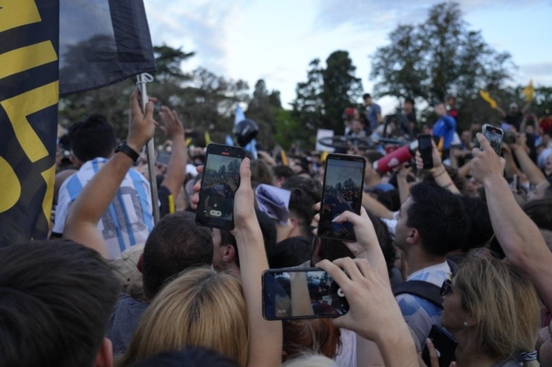 Cerca de las 18, todavía era un misterio cómo iba a arribar Milei al Monumento. ¿De dónde partiría la caravana? ¿Cómo accedería al escenario improvisado de cara al río? Irene, quien se presentó como capacitadora de fiscales de LLA, brindó algunas pistas. El libertario llegaría en un vehículo hasta el mástil mayor y desde allí, sin ningún tipo de seguridad, abrazaría a la multitud, para después caminar hasta la tarima. Convencida de esta posible logística, recorrió de punta a punta las inmediaciones, hablando con suma paciencia a los simpatizantes, casi de a uno. “Javier los quiere saludar. No le importa cuándo va a llegar al escenario, quiere verlos a ustedes. Van a dar un pasito, así como si bailaran, para que todos puedan estar con él”, los encaraba. “Cuiden a los más chiquitos, ese bebito de allá, ojo. Estemos tranquilos, hagamos lugar para que todos lo saluden. Vamos con la fuerza del cielo, somos un equipo”, repetía una y otra vez.