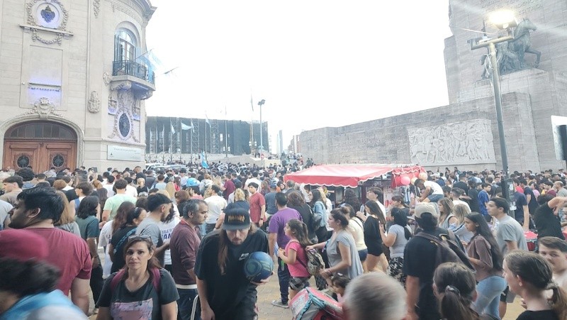 El sol solo era un halo rosado que se confundía con las luces del centro. Hacia allá se dirigió la multitud que, lejos de apagarse, conservaba la actitud desafiante y por momentos, revanchista. A los gritos, coparon las calles aledañas, llevando más lejos —los bocinazos y los cantos llegaban minutos después hasta en Santa Fe y Corrientes— el fueguito que los enciende.