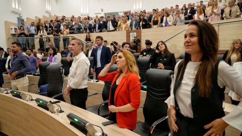 Después hubo aplausos de una platea que mezcló a empresarios, jueces, funcionarios, legisladores, sindicalistas, líderes religiosos, vecinos del urbanizado barrio Banana, veteranos de Malvinas y familiares de víctimas de la inseguridad. También emoción: Javkin lagrimeó mientras recibía saludos y más saludos, para luego partir a almorzar junto a su familia.