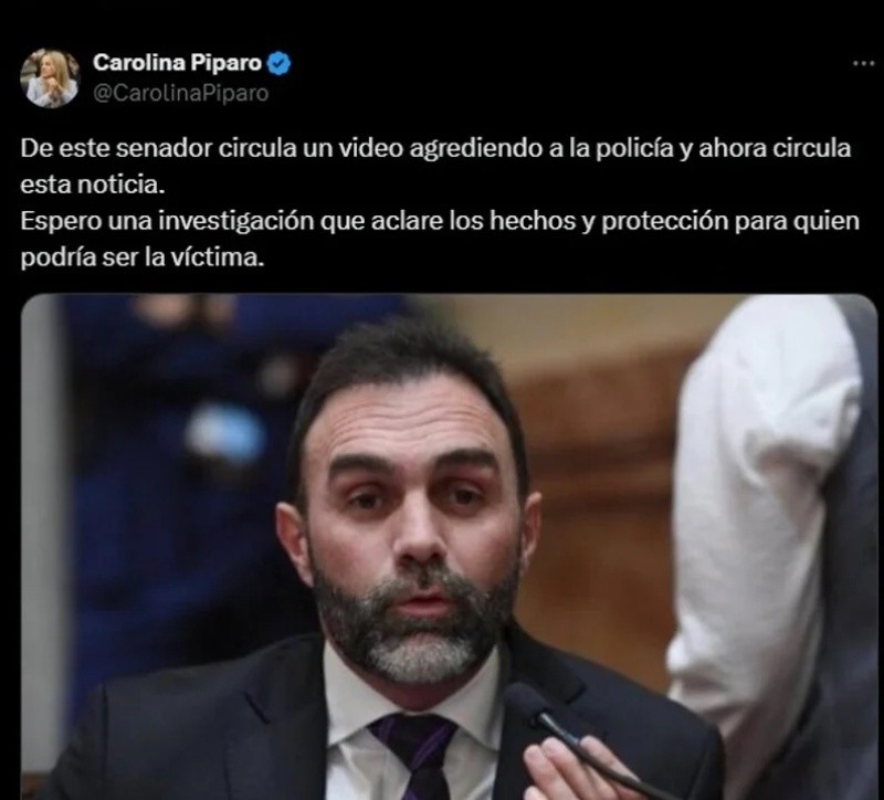 Debido a estos antecedentes, Piparo se pronunció en contra del senador nacional y, desde su cuenta personal de la red social X, pidió “una investigación” para que se “aclaren los hechos”.