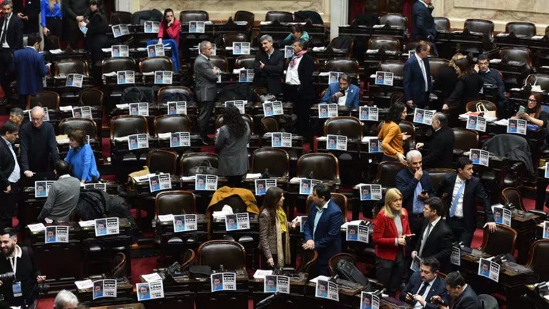 También, cabe destacar que diputados de Unión por la Patria pegaron carteles en sus bancas con la cara de Loan, el niño desaparecido en Corrientes.