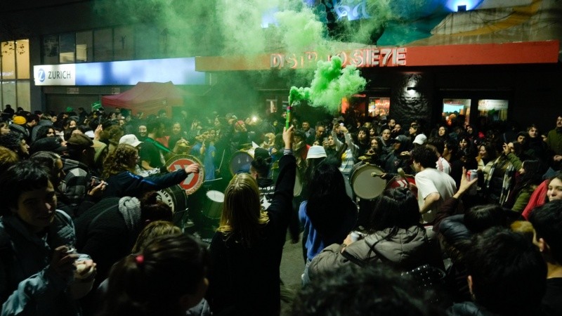 La noche va a ser larga en la cuadra de Lagos al 700, que pasada las diez está cortada por el festejo de los militantes a puro bombo, bandera y bengalas verdes, quizás también como un camino para calentar los cuerpos y disimular el frío. El ganador no para de dar notas a los distintos medios que cubren el festejo, los recibe uno por uno en los camarines del D7. A unos metros, Caren Tepp responde miles de mensajes en su teléfono celular, levanta la mirada e identifica a un cronista del canal porteño C5N con el que habló más temprano: “Te dije lo que iba a pasar”.