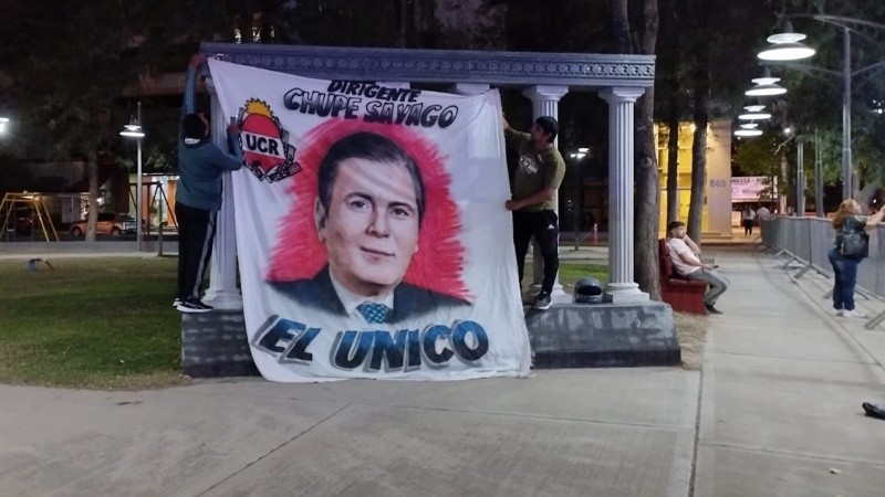 Convivieron allí con unos pocos que querían ver a Milei pero llegaron tarde, y con Chupe Sayago, un puntero barrial de la UCR que fue a llevar una bandera con su nombre y la imagen del “mejor gobernador de la historia”, el que “terminó con 50 años de atraso en esta provincia”, "el único".