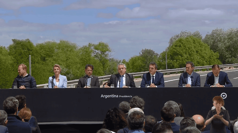 "Hace falta que el crecimiento llegue a todos y, para eso, hace falta un Estado presente que sea capaz de distribuir adecuadamente esa riqueza que se genera. Por eso somos orgullosamente peronistas", subrayó el jefe de Estado durante la inauguración de la finalización de la autopista Ezeiza-Cañuelas y la puesta en marcha de obras en varias provincias por videoconferencia.