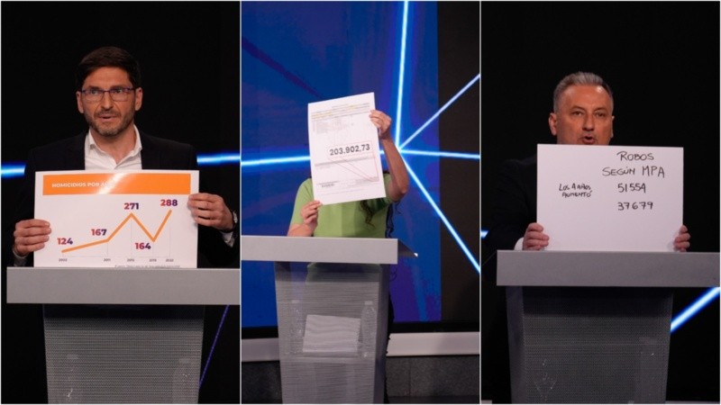 De yapa: los soportes y el final. Tanto Lewandowski como Pullaro Y deiana usaron carteles para reforzar sus mensajes, pero en el caso del candidato de Unidos, las luces del estudio se reflejaban en el papel brilloso e impedía ver con claridad gráficos y números. Por eso, se aconseja siempre chequear antes cualquier dispositivo que use como refuerzo al propio discurso, para que se incorpore de la mejor manera. En el caso del candidatos de Juntos y del de la Izquierda, al mostrar los carteles a veces se tapaban la cara.
