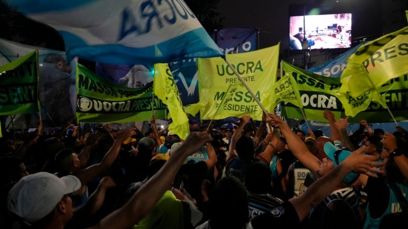 Unión por la Patria montó su centro de campaña en el Complejo C de Chacarita. La prensa estuvo por un lado, con un lugar amplio, a diferencia de la expulsión de buena parte de los medios que hicieron los libertarios (incluso de agencias internacionales). La dirigencia peronista quedó separada en un salón bastante exclusivo y afuera, la militancia. El primer anillo, bien orgánico: los movimientos sociales y políticos (Evita, Barrios de Pie y La Cámpora) y los sindicatos (Uocra y Upcn, entre los más nutridos). Desde temprano estuvieron las banderas, los bombos y las trompetas.