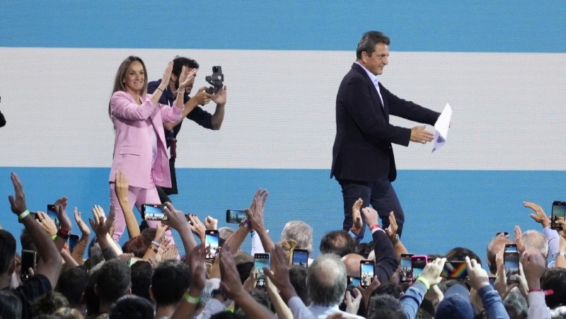 "Gracias a todos y todas, sigamos defendiendo la idea de un país justo", aseguró Massa a los militantes reunidos en el búnker de Chacarita.