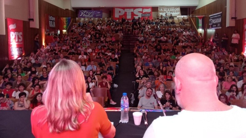 Junto a Bregman y del Caño estuvieron en la mesa Octavio Crivaro e Irene Gamboa, referentes del PTS-Frente de Izquierda en la provincia, además del dirigente docente Franco Casasola, y Lautaro Habibi y Mariel Pasetto, referentes estudiantiles de la izquierda.