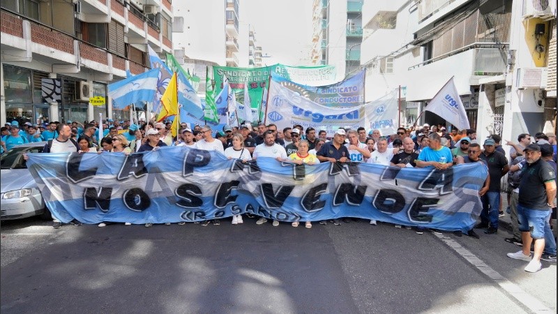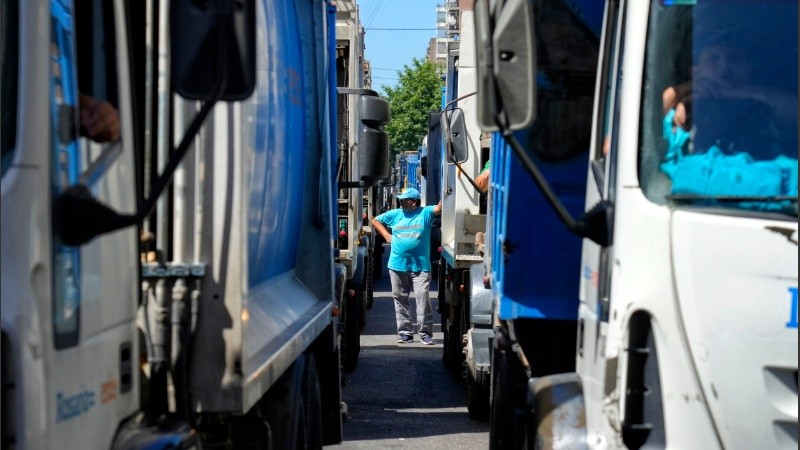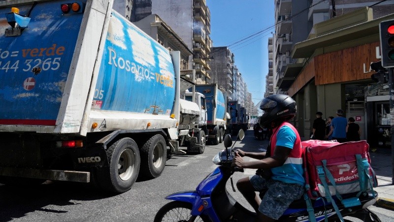 Además de trabajadores a pie, había presencia de camiones de todas las empresas recolectoras que avanzaron por Corrientes y Mendoza, luego por San Luis también con dirección al Monumento.