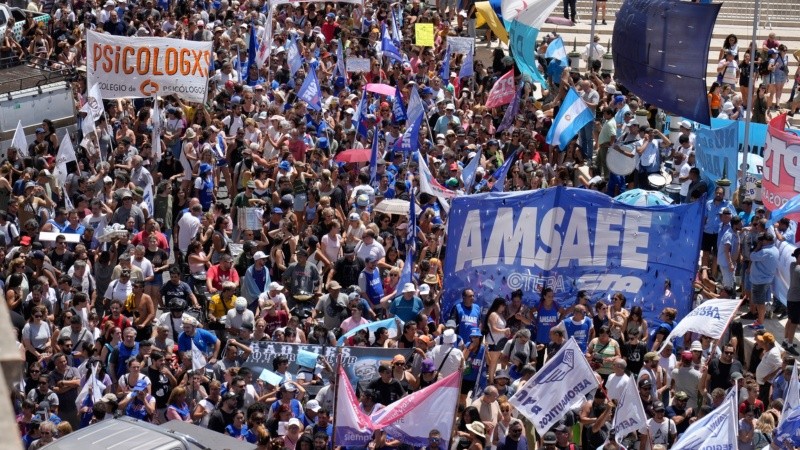 @De12a14 - #AHORA | Marcha de gremios: A las 13hs acto en el Monumento. El testimonio de los manifestantes. pic.twitter.com/hAK9WRESH7