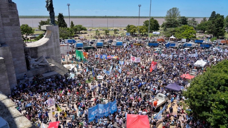 En Rosario, las organizaciones sociales partieron desde distintos puntos de concentración al Monumento a la Bandera donde se realizaba el acto central desde las 13. Los estatales de ATE Rosario se reunieron a partir de las 11 en Plaza San Martín para marchar hacia la Plaza 25 De Mayo y luego confluir en el mismo en el Monumento en conjunto con todas las centrales obreras, organizaciones sociales y estudiantiles, con el lema “la Patria no se vende, se defiende”.