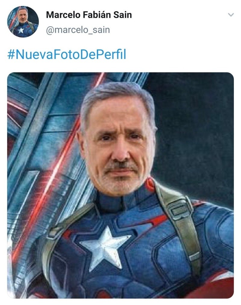 La cuenta de Twitter del ministro de Seguridad de Santa Fe, Marcelo Sain, sorprendió este jueves a la tarde por un repentino y llamativo cambio de foto: en la imagen de perfil el funcionario aparació caracterizado como Capitán América y rápidamente en las redes se preguntaron si lo habían hackeado. Pero no.