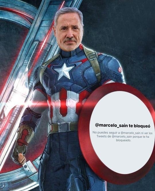 El montaje del ministro como Capitán América, que el funcionario atribuye a la oposición, tiene en su escudo la inscripción “@marcelo_sain te bloqueó”, en referencia a los cruces que ha tenido con diferentes usuarios de la red social.