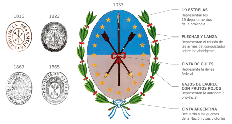 Cuarto tópico: “Símbolos patrios”. “Vamos a pedir cambiar la dirección de las flechas del escudo de Santa Fe que representan el sometimiento y esclavitud de los pueblos indígeneas, o sea la victoria del conquistador en territorio santafesino, mientras que colocar las dos flechas hacia arriba simbolizaría a los pueblos indígenes en igualdad de derechos y garantías como cualquier ciudadano de Santa Fe”, explicó.