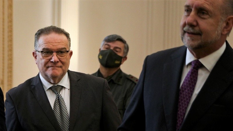 Del encuentro también participó el ministro de Gestión Pública, Marcos Corach, quien a la salida habló con la prensa y señaló que "se decidió que el ministro diera un paso al costado, y si se va el ministro también se va la jefa de Policía".