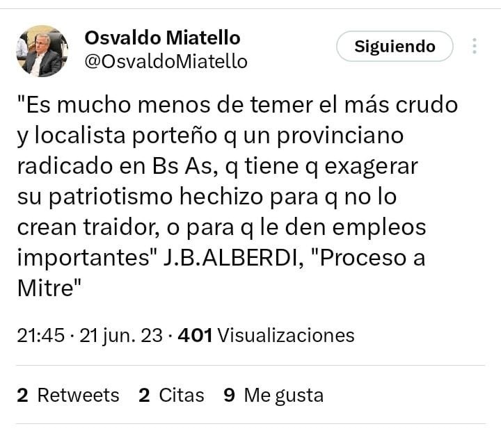 DN: Jajaja Nooo. Pero ya estaban muy presentes desde la Revolución de Mayo las tensiones entre el interior y Buenos Aires… Y el ilustre tucumano sabía de qué hablaba.