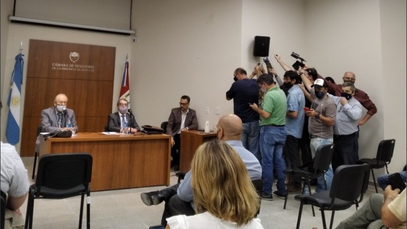 En una conferencia con una nutrida presencia de medios de Rosario y Santa Fe, el primero que tomó la palabra fue el asesor legal de Traferri, el experimentado abogado José Luis Vázquez, quien aclaró que “el motivo de la convocatoria de esta conferencia radica en que, por la gravedad institucional que estamos transitando, tanto el senador Traferri como su asesoramiento legal, bregamos por la transparencia”.