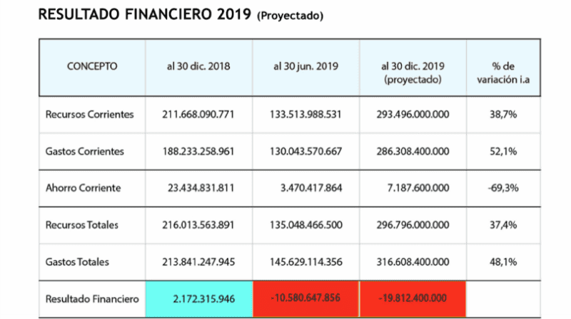 Los voceros del perottismo señalaron que el rojo en las arcas provinciales al mes de junio ascendía a 10.580 millones de pesos. Ante la caída de la recaudación, el sostenimiento de la ejecución de gastos y la expectativa de inflación, la cifra del déficit para diciembre superaría los 19 mil millones de pesos.