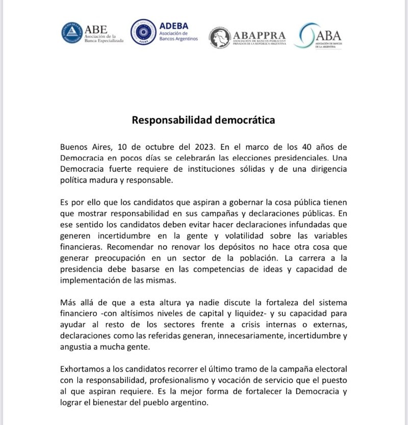 DN: Como todos los bancos que salieron en conjunto a criticar a Milei por sus declaraciones contra el peso.
