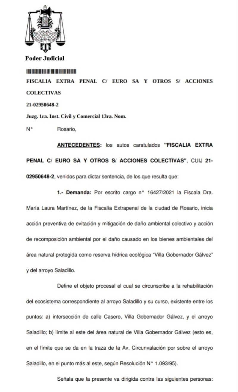 MG: ¿Por eso la jueza Gotlieb accede a que intervenga en la causa por contaminación del arroyo Saladillo y la reserva natural?