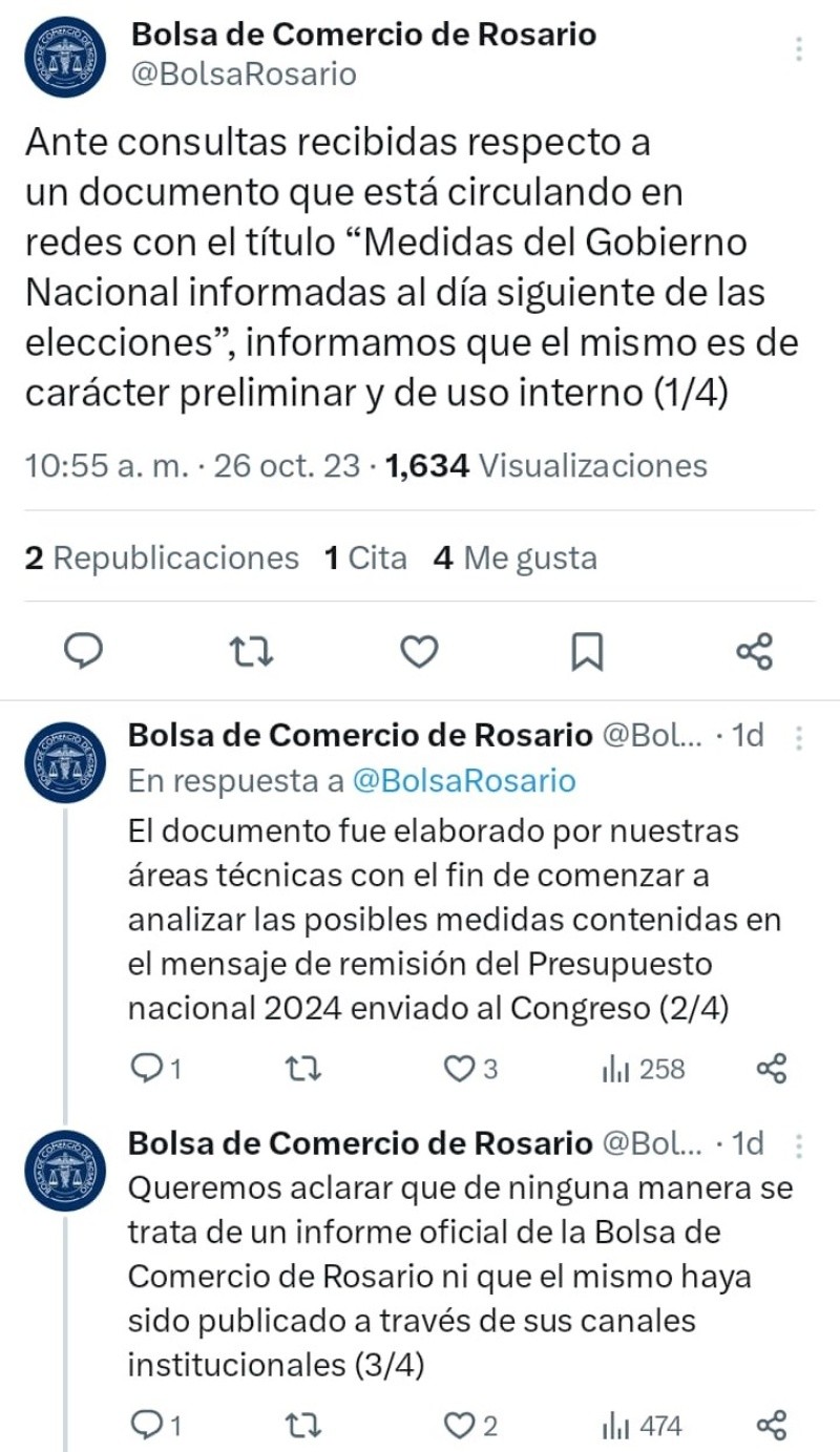MG: La Bolsa tiene muy buena relación con el gobierno, y por eso debe haber molestado ese paper preliminar en el Ministerio de Economía. ¿Pero quien va a querer justo hoy pelearse con Massa que tiene serias chances de ser el próximo presidentes? Es más, la estrategia del empresariado es aprovechar que está en campaña para pedirle de todo. Además, la Bolsa no necesita que se filtre un documento, si quiere plantarse contra una medida de gobierno.