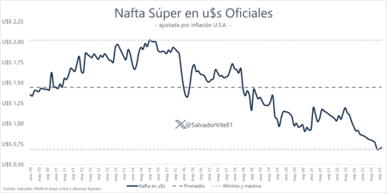 MG: Mercado puro. El precio en dólares está en niveles muy bajos y no cierra producir. El tema es que la nafta no está cara, sino que el peso está regalado. Pero además El faltante en las estaciones de servicio de todo el país pone de manifiesto, una vez más, la urgente necesidad de sustituir las importaciones de naftas con la producción local de bioetanol y biodiesel.