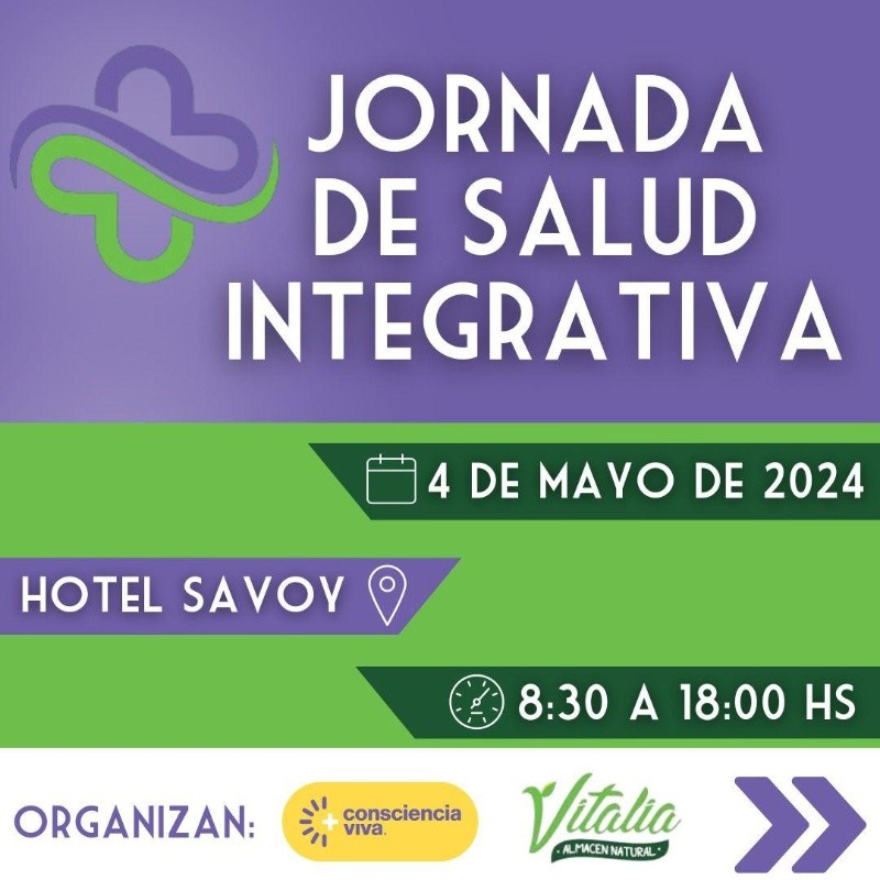 El próximo sábado, 4 de mayo, se realizará en Rosario la “Jornada de Salud Integrativa” organizada por Vitalia Almacén Natural y Consciencia Más Viva. De 8:30hs a 18:30hs, los asistentes podrán vivir una experiencia única con disertaciones de especialistas en diversas áreas que brindarán sus conocimientos y experiencias vivenciales en este camino de búsqueda del bienestar. Será en el auditorio del Hotel Savoy (San Lorenzo 1022) y las inscripciones se encuentran abiertas.