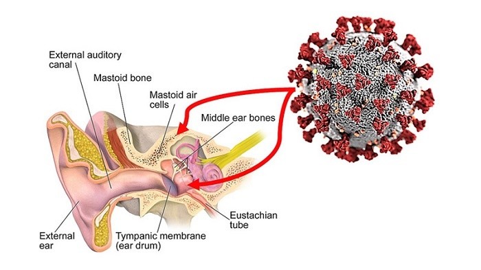 La teoría sobre cómo es que el virus ingresa al oído interno señala que podría ser mediante un tubo que conecta la nariz con el oído medio, o que se escapa a través de pequeñas aberturas que rodean los nervios olfatorios e infecta los nervios craneales, incluido el que conecta con el oído interno.