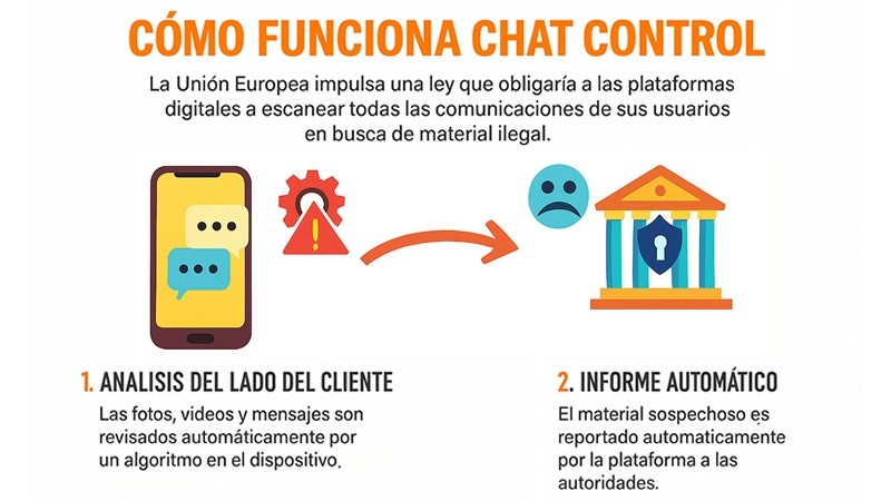 La Comisión Europea presentó en mayo de 2022 el proyecto formalmente denominado Reglamento para prevenir y combatir el abuso sexual de menores, que obliga a los proveedores de servicios digitales a detectar, reportar y eliminar contenidos vinculados a este delito. Para hacer cumplir esas órdenes, el texto admite tecnologías de escaneo de comunicaciones incluso cuando los servicios usan cifrado de extremo a extremo (E2EE), un estándar de seguridad digital que asegura que solo el emisor y el receptor puedan leer los mensajes. Esto incluye fotos, audios, videos, llamadas y videollamadas en aplicaciones tan populares como WhatsApp, Instagram o Facebook, por ejemplo.