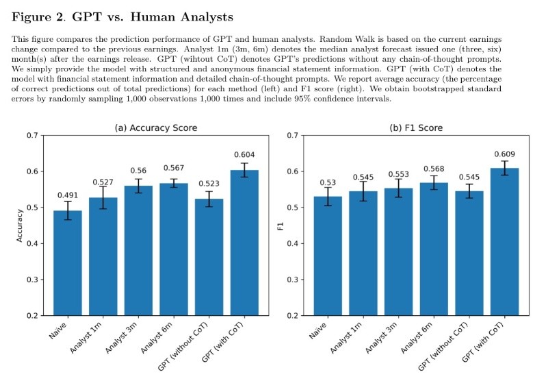 Según la investigación, el modelo de OpenAI consiguió predecir las ganancias futuras con una precisión del 60%, mientras que los profesionales humanos rondan entre el 53 y 57% para el mismo trabajo.