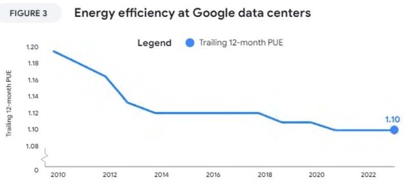 Según detalla el informe, durante el pasado año el consumo eléctrico total de sus centros de datos creció un 17 por ciento y, dado que la infraestructura de Google "sigue impulsando la transición digital", la compañía espera que esta tendencia siga aumentando en el futuro.