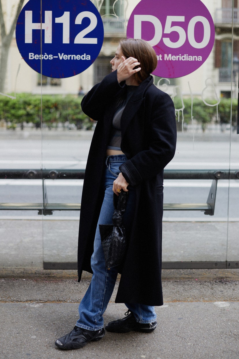 Top y jean recto con zapatillas y abrigo XL (vogue.es)