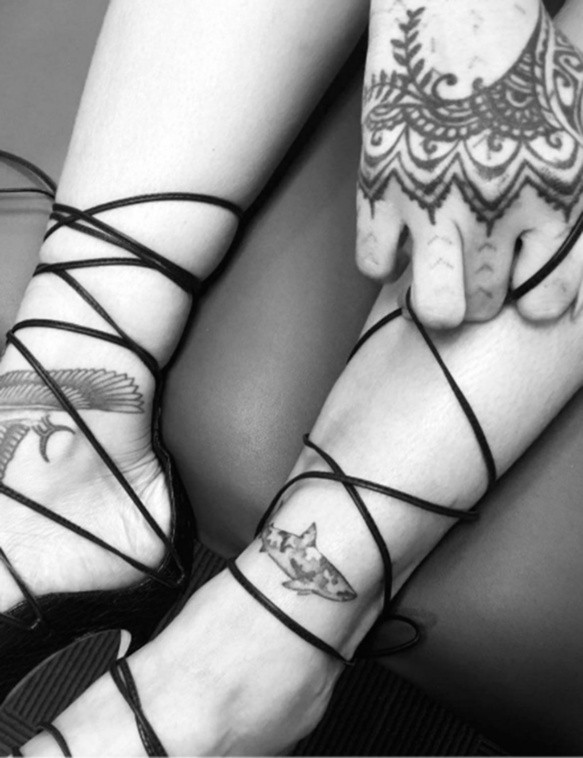El nuevo tattoo de Rihanna está inspirado en un peluche de tiburón que el rapero Drake le regaló a la artista.