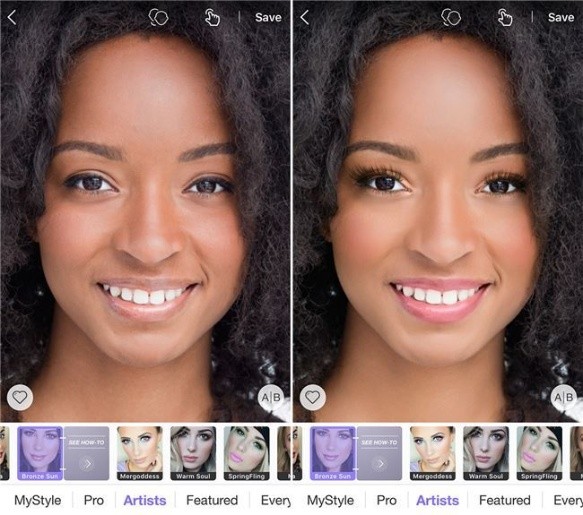 Se trata de una aplicación que emula diferentes looks de maquillaje de una forma bastante realista. Ofrece amplias propuestas para labios, ojos, rostro, cabello, etc, además de eliminar las imperfecciones, blanquear los dientes, perfilar las cejas e incluso cambiar el color de tus ojos, entre otras funciones.