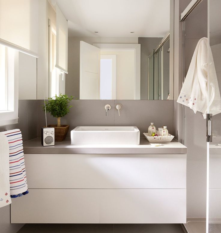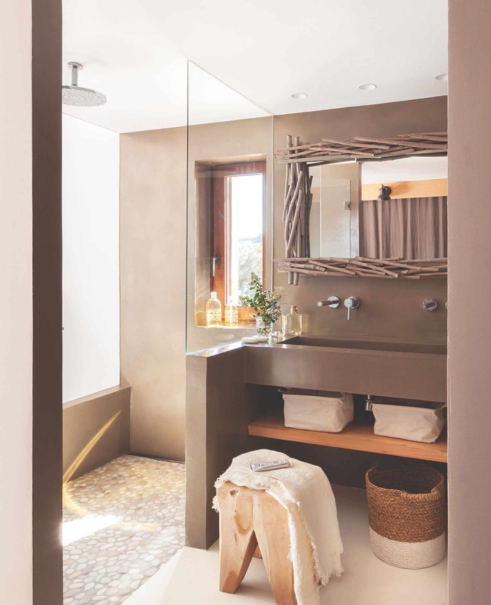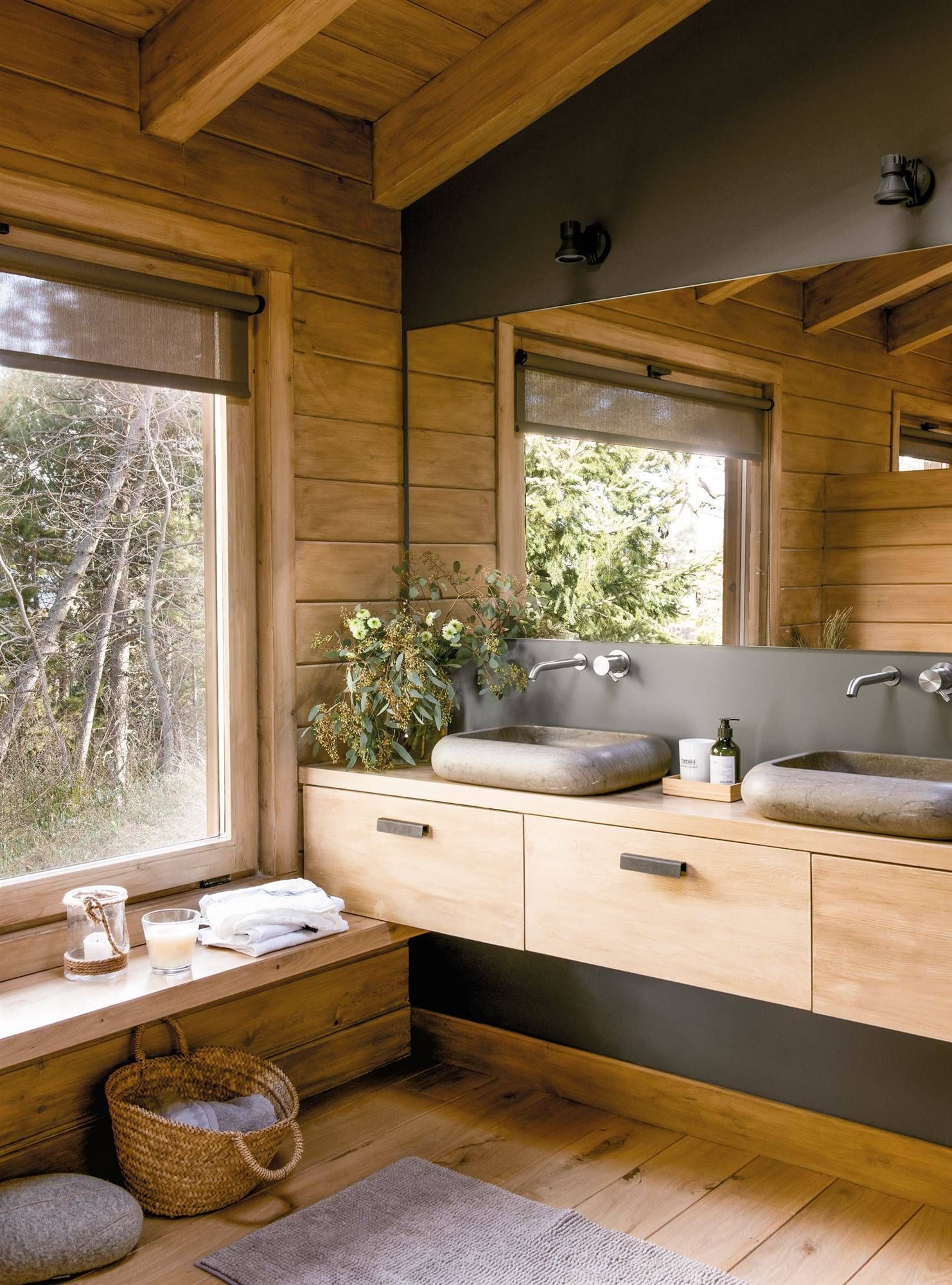 Todas las tonalidades de gris son pertinentes, pero la opción más intensa es ideal para resaltar una pared -en especial, la que contiene el espejo-, y combinar con madera para un toque más rústico.